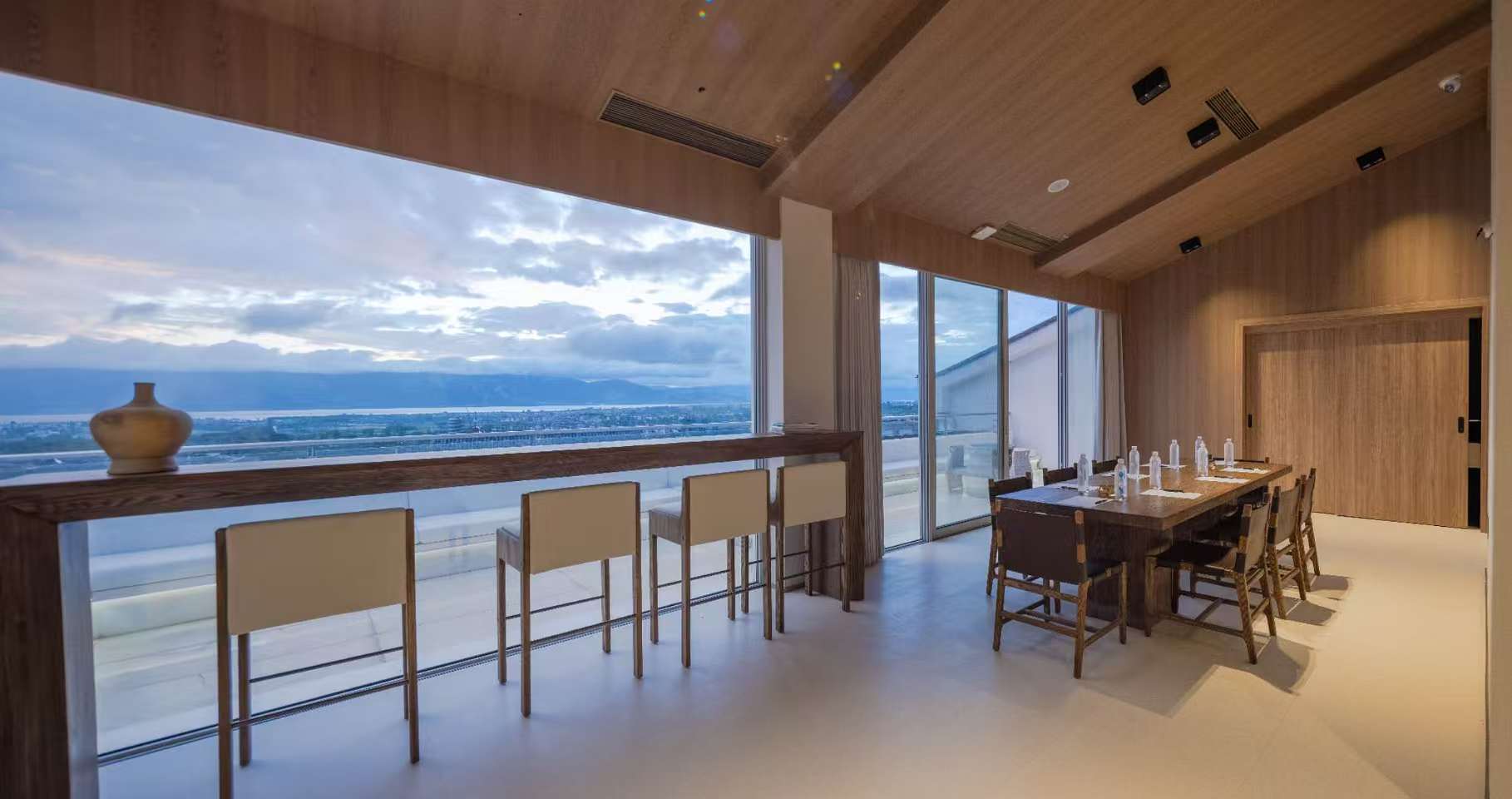 续住一天,在酒店观景台看了个日出,设计师是用心的啦~结构错落很nice,前面可以看日出,后面山岚雾气,左右都是村落民居。树影斑驳,凉风习习,听鸟语虫鸣脑子都清醒了。父母说床品也比较软,比较舒服。大厅挑高高,人心情比较舒服。强推蛋糕和早餐的吐司,吊打有的星级酒店,希望一直保持品控才行。离S弯、大理古城、崇圣寺都不太远,又很清净。请酒店一定要保持品控!