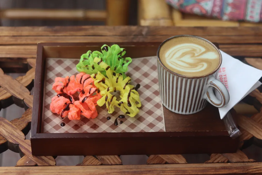 一口凤羽,半日闲 「羽乡咖啡」:以徐霞客“凤羽仙乡”为灵感命名的羽乡咖啡。老板2024年返乡回到凤羽镇创业,如今一店一人,一边忙事业,一边陪伴着自己的温馨小家。来此别错过展期内的限定风味——“银杏果拿铁 + 米干兰小食”套餐,用一杯咖啡的时间,连接起艺术、在地风味与日常诗意。你可以用三个小动作,完整感受这份“凤羽风味”: 「良也奶茶」:镇上的“老字号”奶茶店,由一位斜杠青年经营——他既会书法绘画,又是摄影爱好者,店内墙上挂着他的书画作品,每一杯奶茶都透着文艺气息和小时候的味道。夫妻都很好玩儿,如果你喜爱书画摄影,可能跟他们很聊得来。