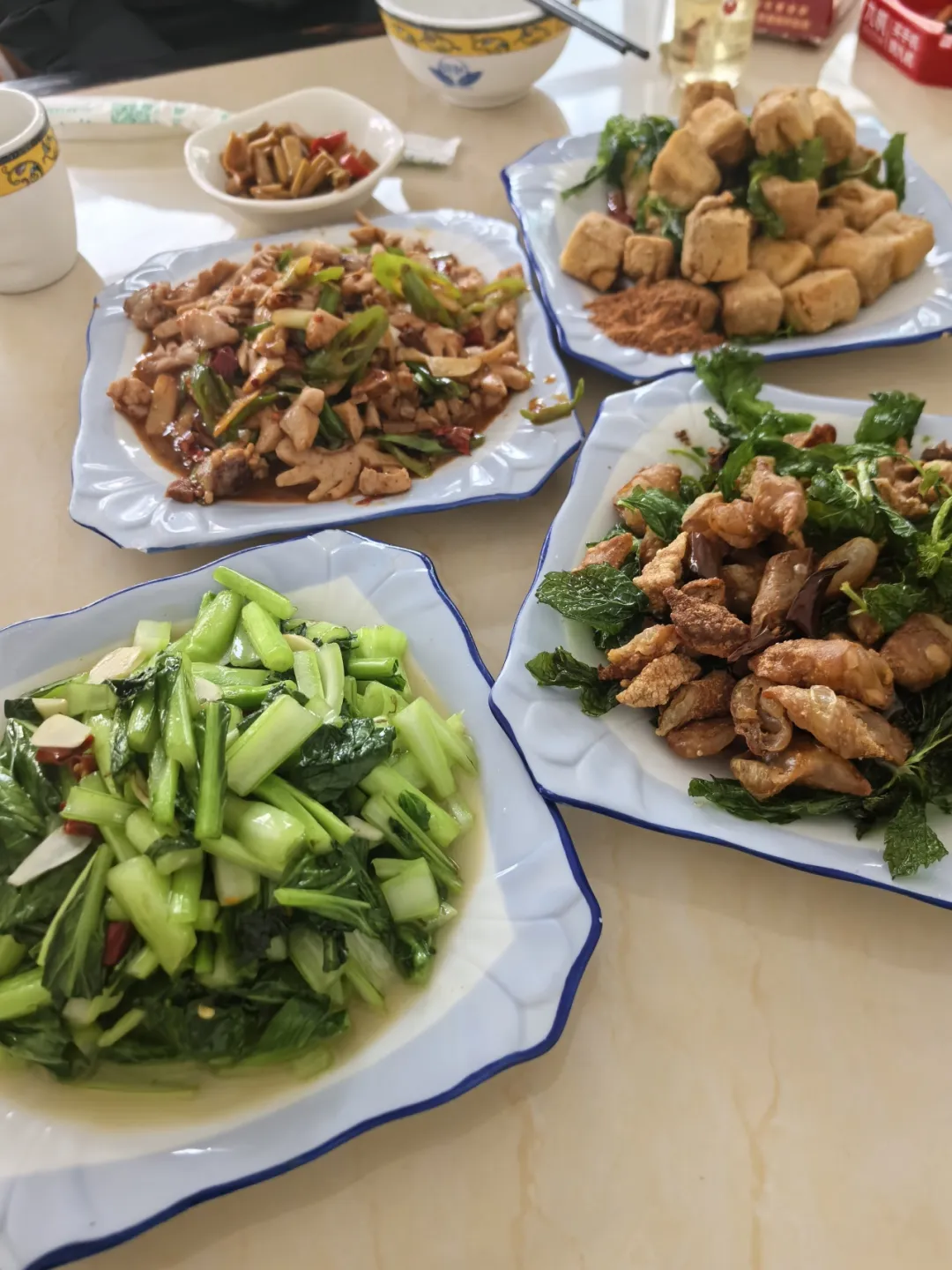 到凤羽第一个中午,当然要去尝尝本地的“凤羽三道菜”。 在「媛媛饭店」有从奶奶辈儿传下来的菜谱,从凤羽河里抓来的野生泥鳅,妈妈亲手腌制的萝卜丝,还有本地山养的小羊肉。 「凤羽农家香饭店」或者去到白族老院里,有老板的招牌软脆薄荷炸排骨、洋芋丝饼和水性杨花炒芋头;社牛可以跟他庭院里即兴K歌,如果投缘,兴致来了听他放歌一曲白族小调,听听老板小时候在村儿里节庆祭典上扮演的各种“角儿”。 如果你喜欢清幽的环境,去官路中心地段的「乐道饭店」,闹中取静,芸豆炖猪脚煨得软且入味儿。